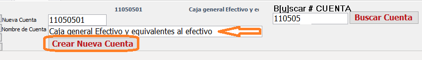 Digite el numero de la cuenta, luego el nombre de la cuenta y por último clic en el botón: Crear Nueva Cuenta