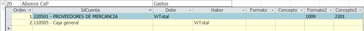 Ahora se relacionan las cuentas contables en las auto-transacciones
