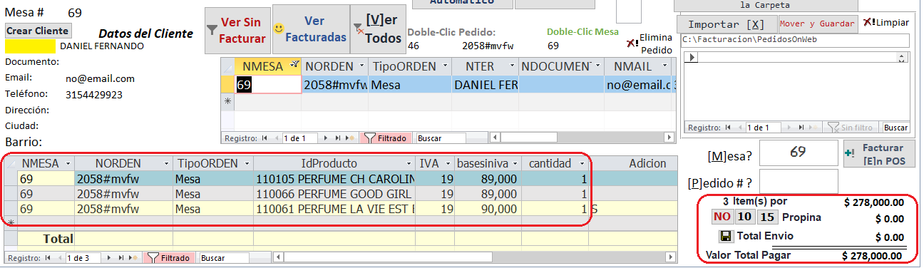 Una vez descargados si hay pedidos se importan al formulario de inFaCont