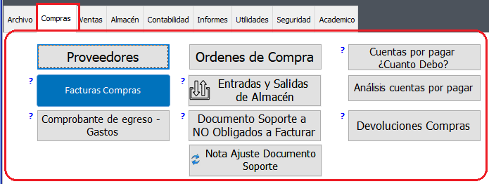 La mayor parte de la información del Formato 1001 se extrae de la pestaña de Compras