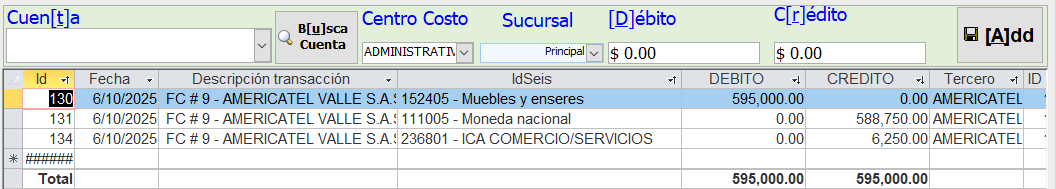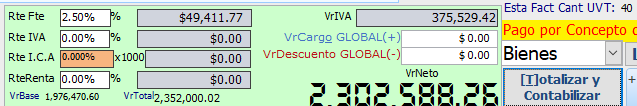Resumen de las 9 Facturas de Compra x Bienes, servicios y activos fijos.