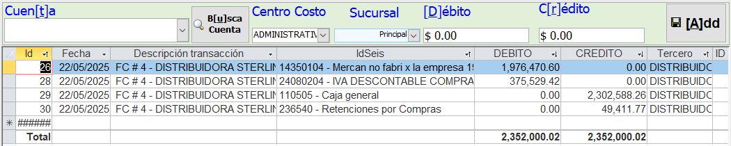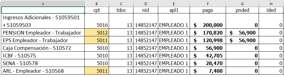 Este concepto ya se cargaron los movimientos con retención en la fuente.