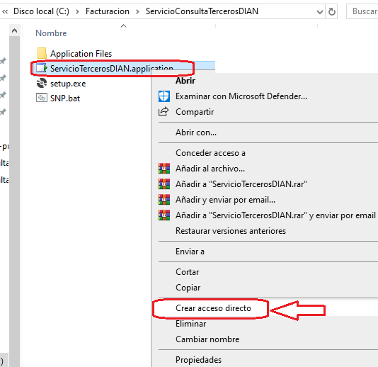 Crea un acceso directo del archivo: ServicioTercerosDIAN.application