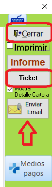 Puede cerrar el documento, imprimir el Ticket o enviar al email del cliente.