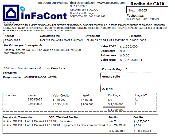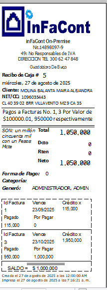 Automáticamente genera el Recibo de Caja y carga toda la información.