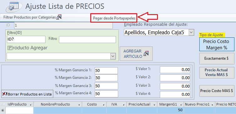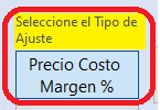 Clic en el botón: [Precio Costo Margen %] como tipo de ajuste