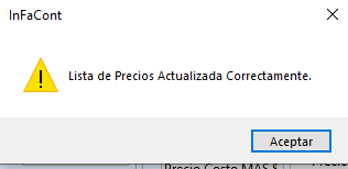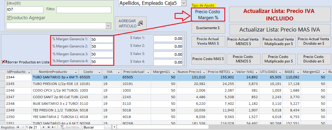 Se vera así, ya con los 21 productos listos para actualizar el precio de Venta