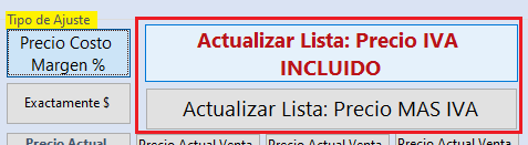 Existe 2 formas de Actualizar el listado con IVA INCLUIDO o Precio MAS IVA