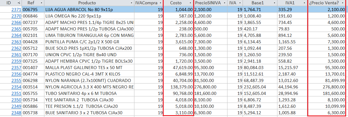 Se puede evidenciar que ya actualizaron todos los precios de VENTA, (costo mas el 50%) con IVA INCLUIDO