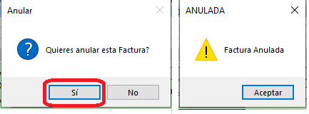 Clic en el botón: Anular Esta Factura, ubicado en la parte superior izquierda