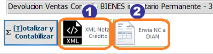 Para enviar la NOTA CREDITO a la DIAN en la parte inferior hay 2 botones: