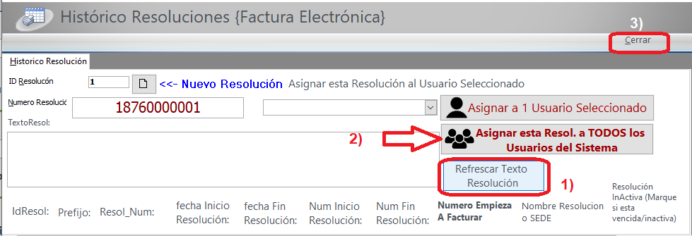 2.) Asignar esta resolución a TODOS los usurios del Sistema