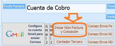 Por último, clic en el botón Iniciar Núm Factura y Cotización
