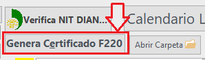 Puede cambiar de año con ayuda de las flechas Clic en el Botón Generar Certificado F220: o presione las teclas: Alt+E (con estas teclas Expide el Certificado)