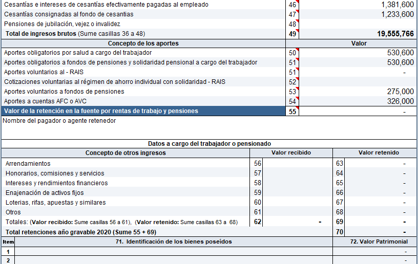 Salarios - Certificado de ingresos y retenciones formulario 220 de la DIAN |