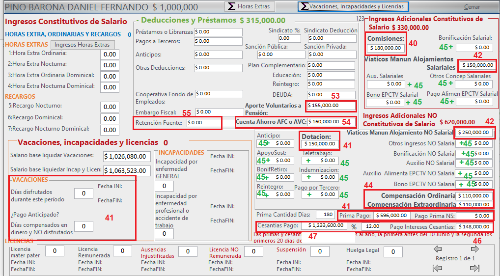 Casilla 41: Suma de PRIMA-VACACIONES-DOTACIONES