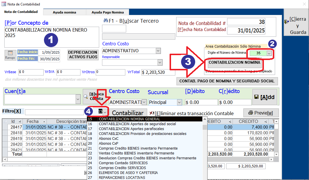 1. Clic en: Contabilizar nómina
