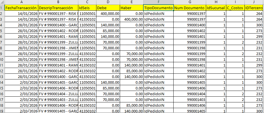 - Exportar transacciones contables de un periodo a un archivo Excel para compartir con otra empresa o sucursal
