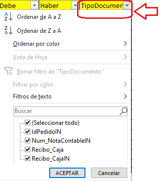 Para clasificar los documentos puede aplicar filtro en TipoDocumento