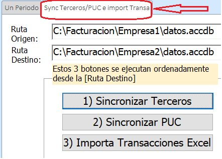 Clic en la pestaña: Sync Terceros/PUC e import Transa