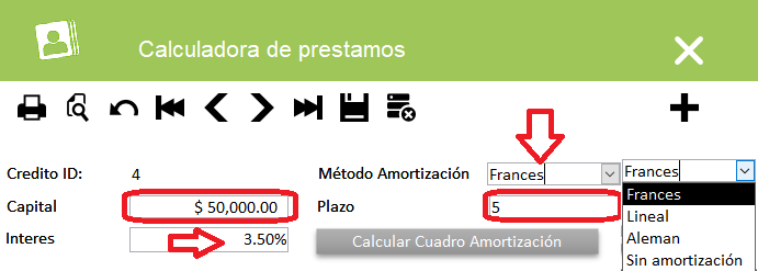 inFacont tiene una utilidad de calculadora de prestamo que le puede ser util para hacer los calculos de amortizaciones