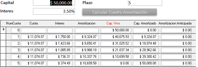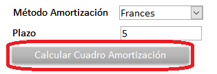 Por último clic en el botón: Calcular Cuadro Amortización