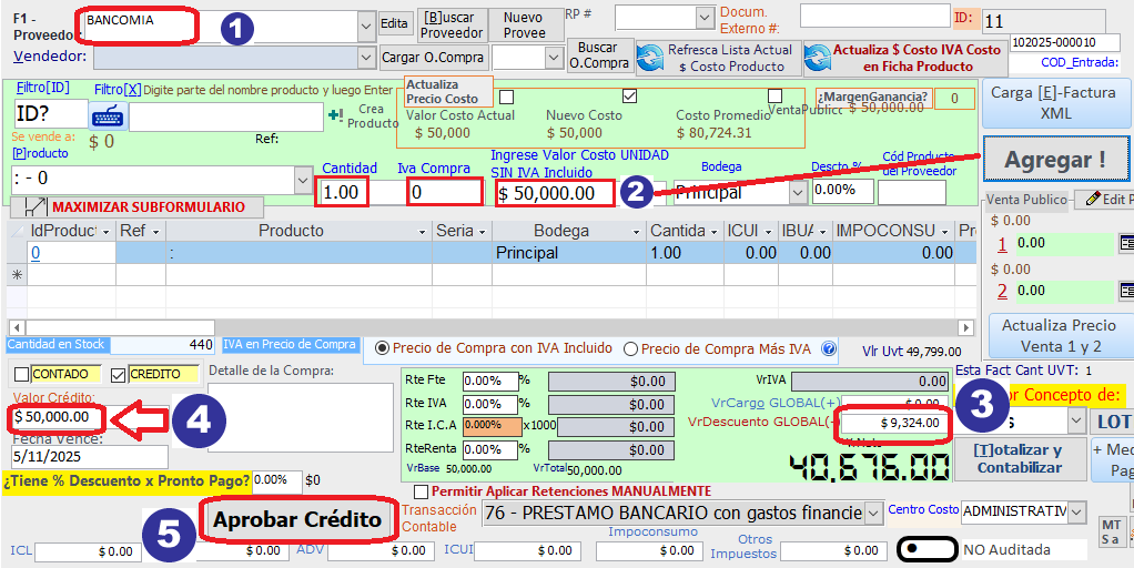 5) Clic en el botón Aprobar crédito para enviarlo a Cartera CxP