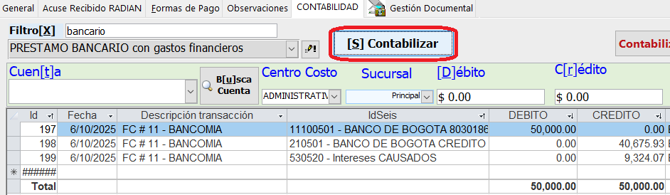 Clic en el botón: Contabilizar