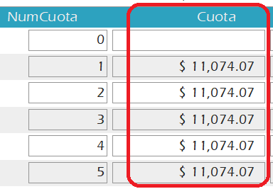 Digiete el valor de la Cuota Fija: $ 11.074.07