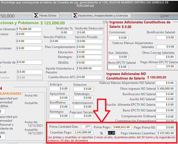 Para que cargue en la nómina las novedades de primas y cesantias