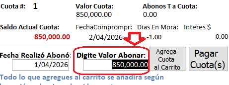 ValorAbono = SaldoCuota |