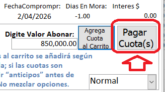 - Repita para cada cuota que desee pagar