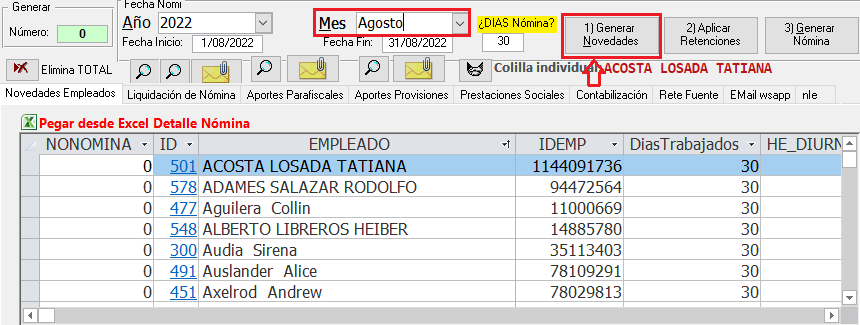 Seleccione el Mes y Genere las Novedades