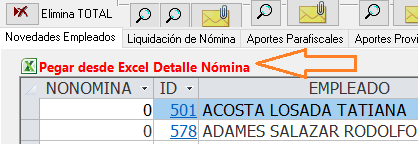 Clic en el botón Pegar desde Excel Detalle Nómina
