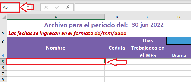 Dentro dela planilla de Excel ubiquese en la Celda A5