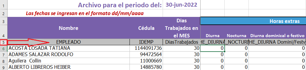 Abrir el Archivo para pegar las novedades, puede descargar la planilla en blanco: Clic aqui