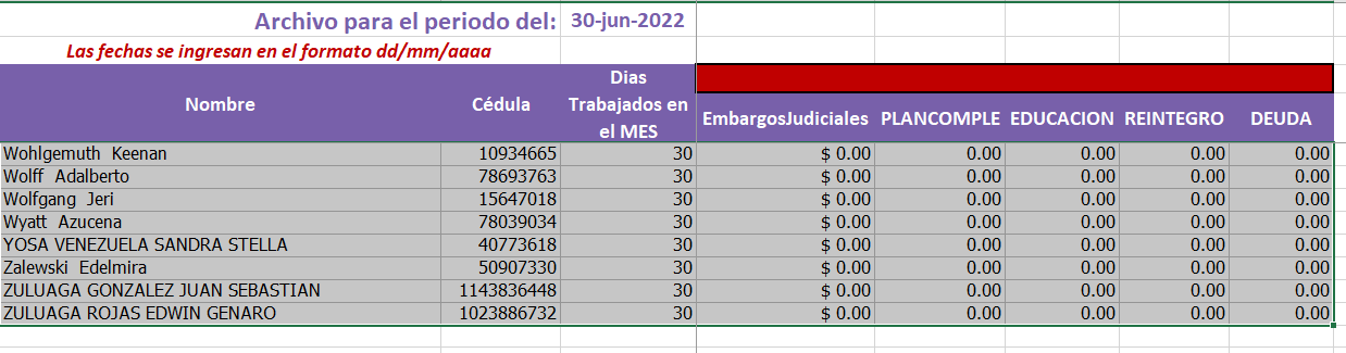 Nota muy imporante: Por Favor NO ingresar NI Eliminar Empleados en esta planilla de Excel
