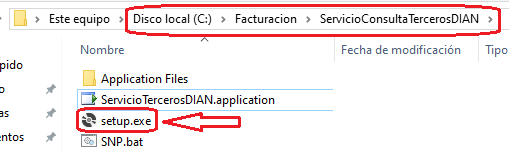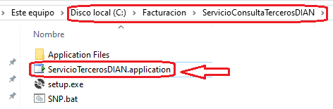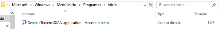 Crea un acceso directo del archivo: ServicioTercerosDIAN.application