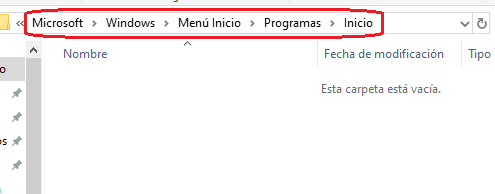 Mueve el acceso directo a esta carpeta vacia llamada inicio: